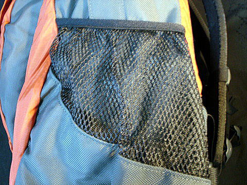 ちょっと厚手のリップストップ生地でできた1気室構造で、縦に大きく開く、かなり大きな小物入れが付いています。