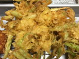若ゴボウ煮浸し、若ゴボウかき揚げ、焼売、ちらし寿司