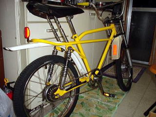 冒頭に掲げた画像はヤマハのモトバイ。ちょっと説明すると、これは現代のサスペンション付MTBのさきがけをなすような画期的な自転車で、前後にリッパなサスペンションが付いた、オフロードバイクのエンジン外して自転車にしたようなものである。重量も自転車とは思えないくらいに重かったのはいただけなかったが、不整地で遊ぶことを主眼に作られた非常にユニークなものだった。
