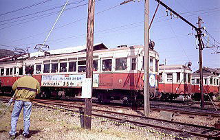 電車の横の看板には「ここが淡路かニースじゃないか」という、これまた時代がかってダサいコピーの旅館の広告が出ていました。「瀬戸内のエーゲ、牛窓」とか「関西の軽井沢・青山高原」なんかと同じノリですね。 |