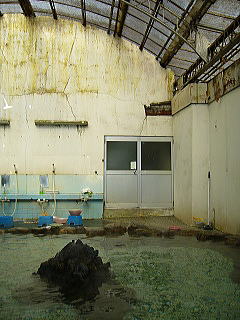 こうして見て行くと、かなり荒れてはいるものの、この温泉が実はひじょうに鄙びた、それも昭和30〜40年代のレジャーブームの遺構に近い、貴重な存在であることが分かります。 |