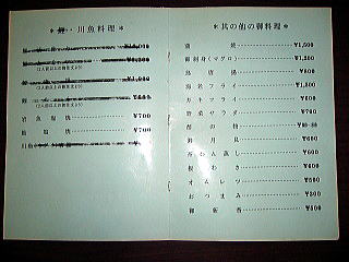 鯉関係のメニューは消されてしまってますが、あとは一通り揃っているのが分かります。 |