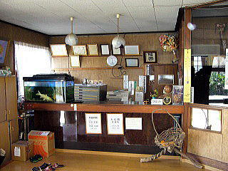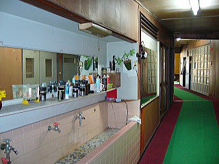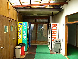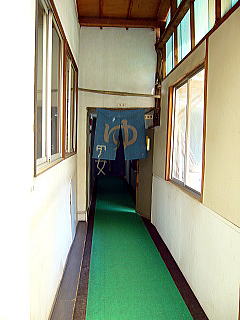 男湯の暖簾の奥に女湯のが下がる変わった構造。 |