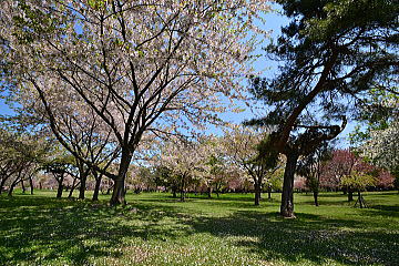 奥はオニウシ公園といってたいへん広くなっており、ちょうど桜が満開になってます。 |