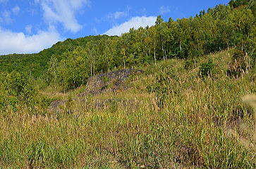 仁木の駅近くの山中にある大江鉱山跡。 |