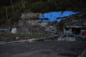 まるで鉱山跡のような無残な姿を見せるのは「梅乃家」「登冨屋」「昭寿館」の焼け跡。
