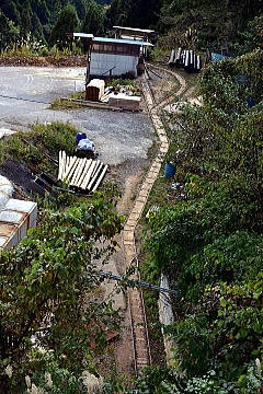 積み上げられた材木は坑木にするためのようで、ここ以外でもあちこちに無造作に積み上げてありました。