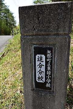クルマ一台がようやく通れる山道を少し上がったところに、小さな校舎が悄然と残ります。 |