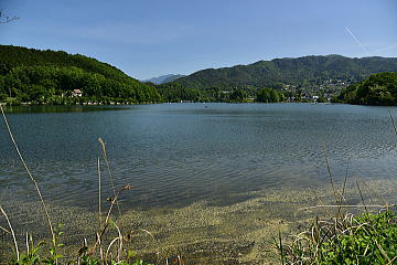 初夏の朝、鏡のように山の姿を映す湖畔に到着。